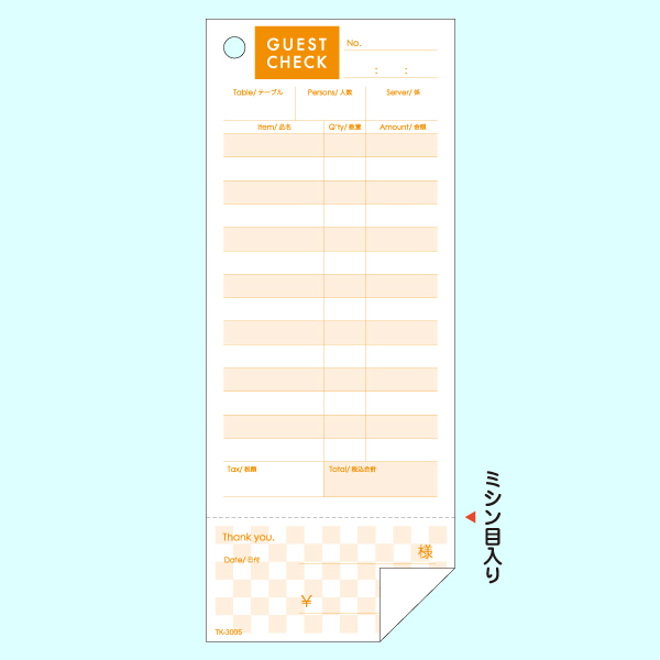 【200冊入】領収書が付いて便利!!カフェ、レストランなどに合うシンプルな業務用単式お会計伝票14行