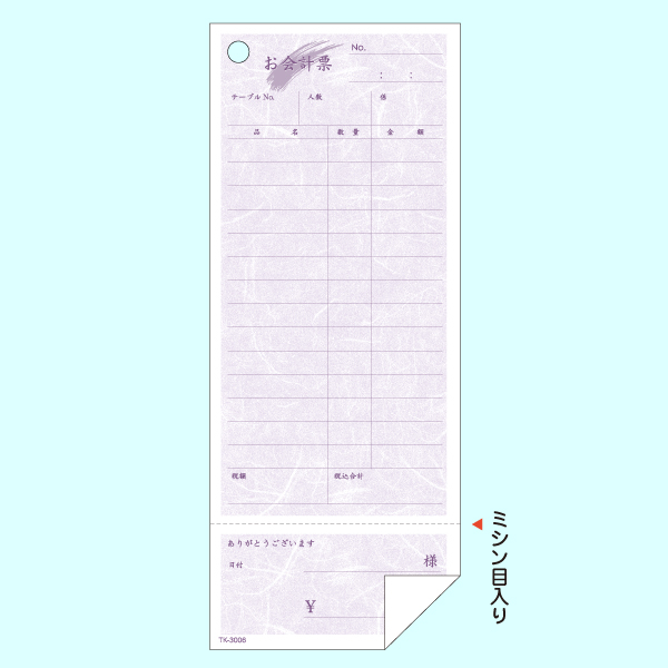 【100冊入】領収書が付いて便利!!和紙の柄が薄く入っていて和食のお店にぴったりの業務用単式お会計伝票14行